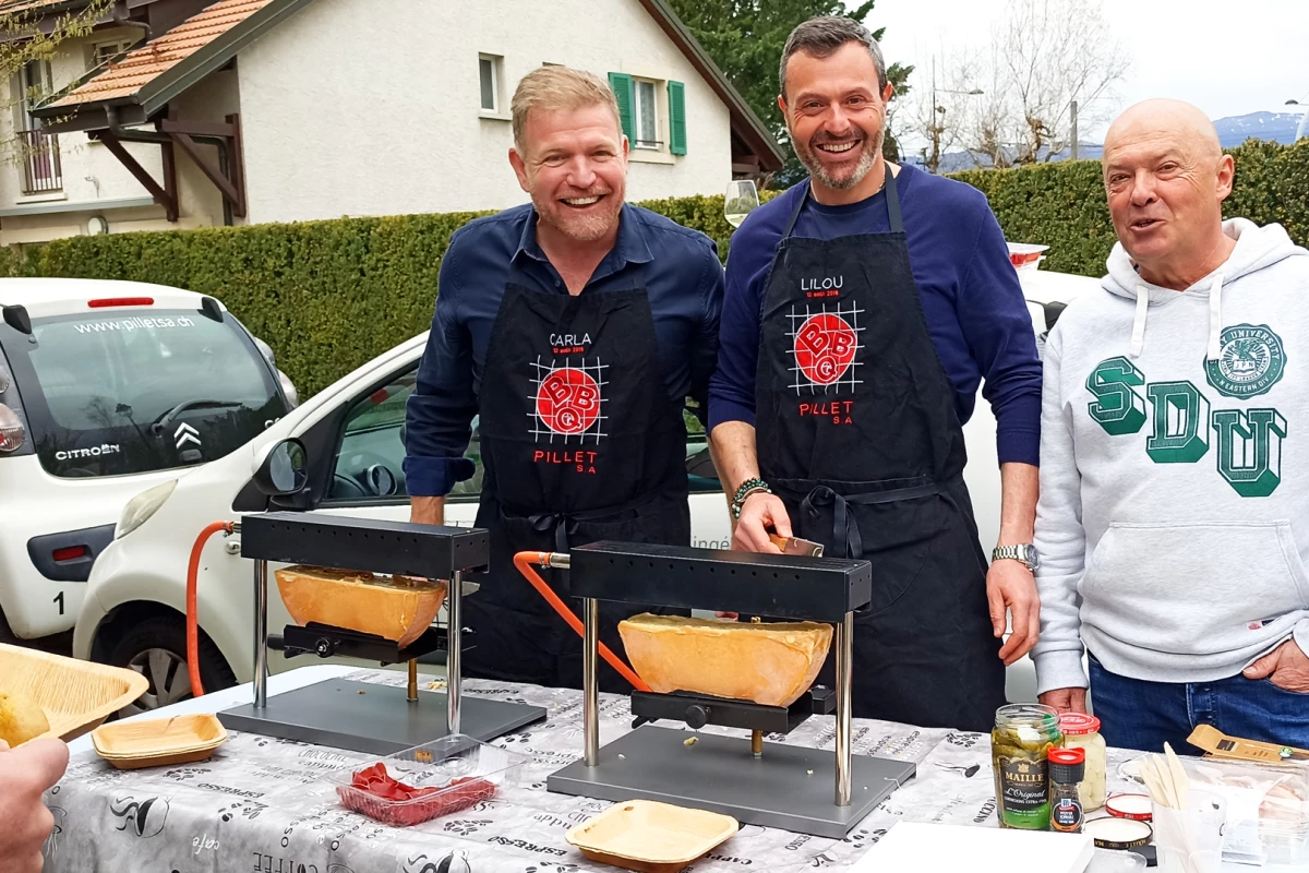 Les directeurs de l'entreprise, Frédéric Ayer et Francesco Ponzo accompagnés de Patrick Pillet, ont participé à l'événement en se prêtant au jeu et en revêtant leur tablier de racleur. Ils ont ainsi pu partager un moment agréable avec leurs collègues et rassembler les différents services de l'entreprise.